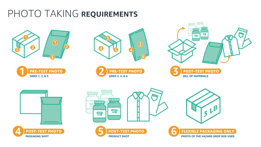 All products must pass a physical performance test through a self-drop test or International Safe Transit Association (ISTA) 6 lab test.